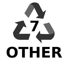 No. 7 – incorporates miscellaneous plastics that do not fit into other categories: some are safe, some may be suspect. Includes those used in baby bottles, large water bottles, sunglasses, DVDs, phone and computer cases, signs and displays, certain food containers and nylon. These plastics are made up of various resins. Some (e.g. polycarbonate) contain Bisphenol A (BPA) |
